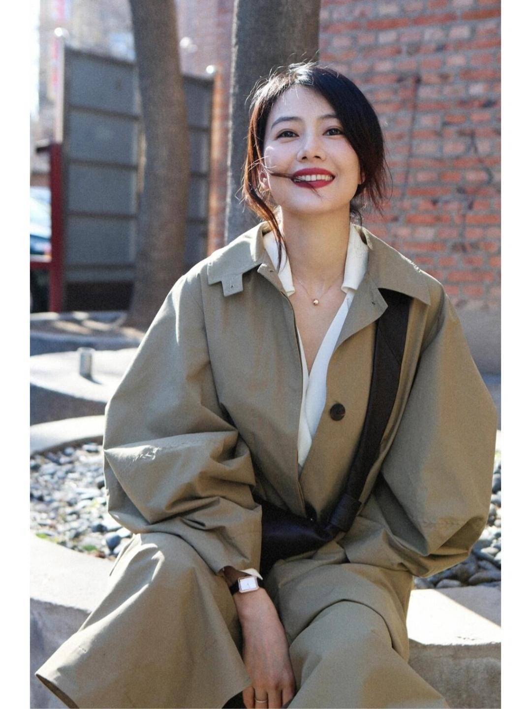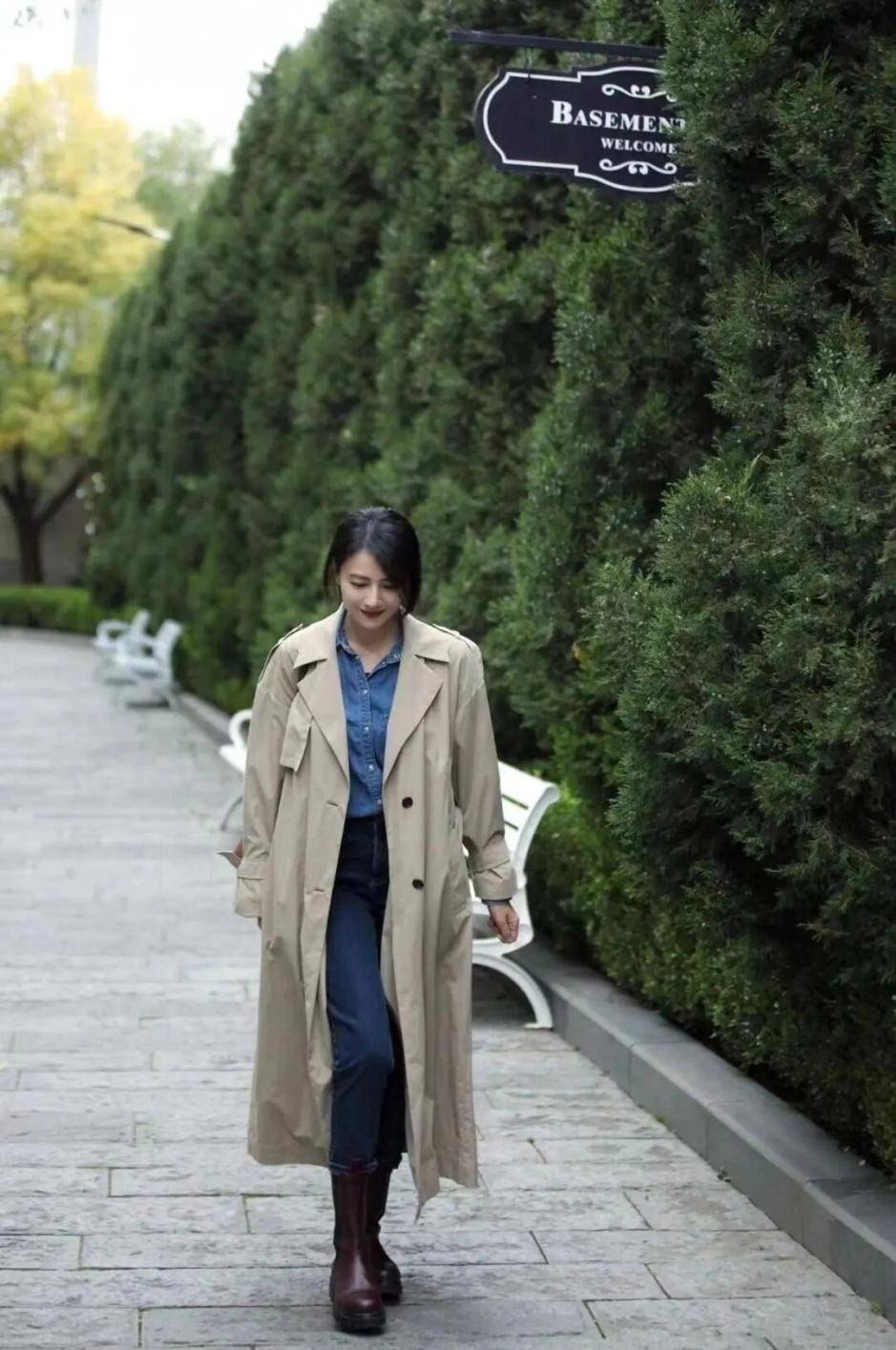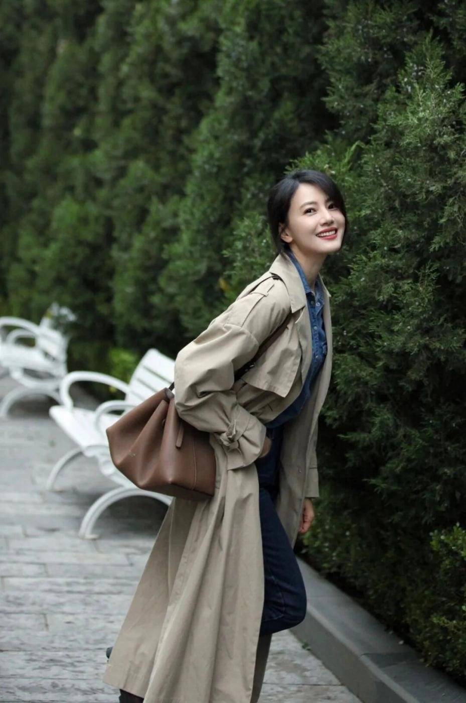 高圆圆的风衣穿搭给人眼前一亮的感觉,45岁看上去像28岁。