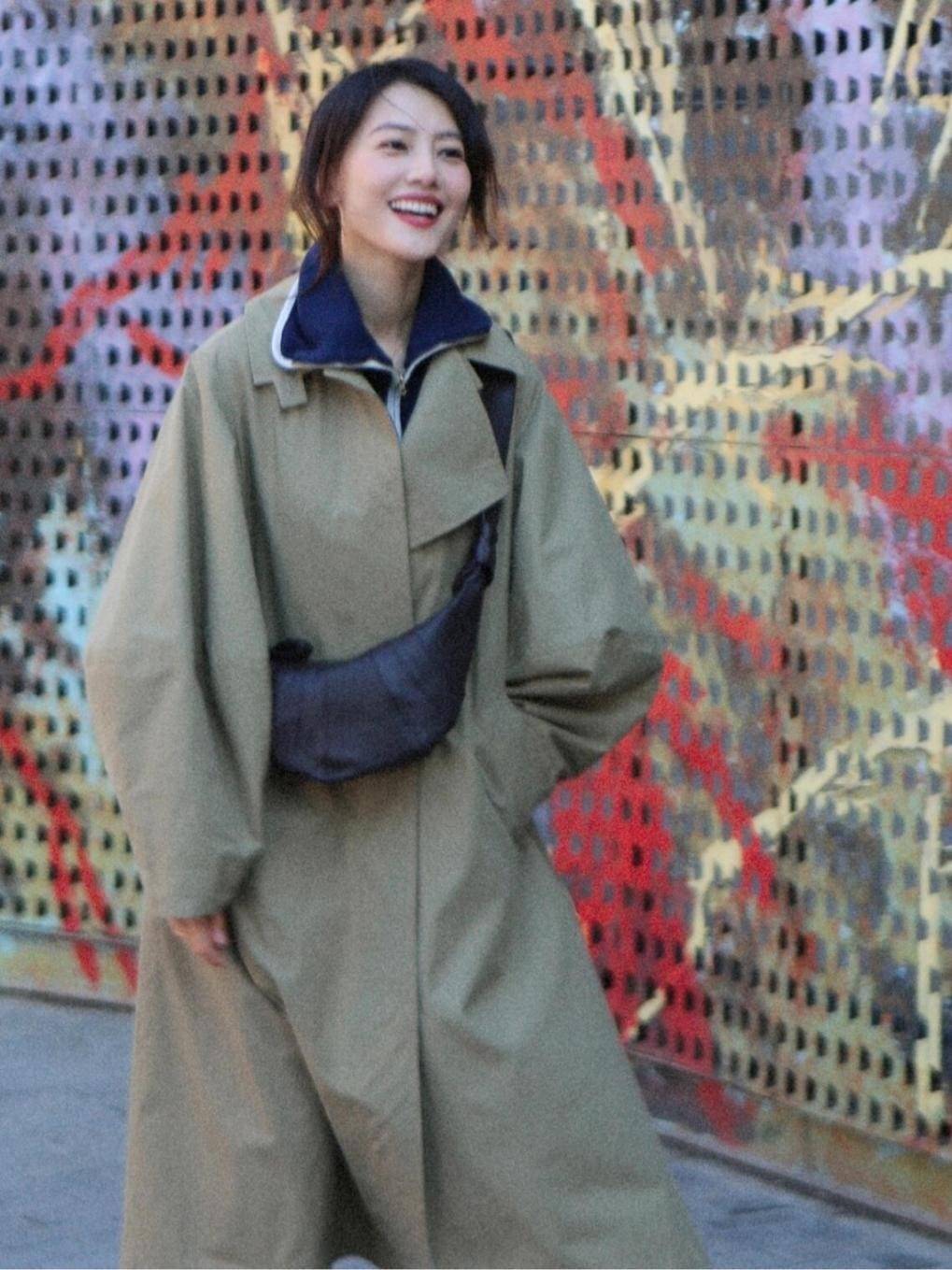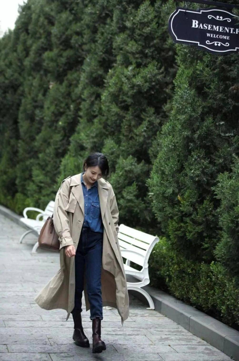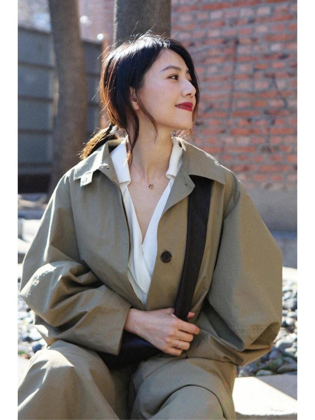 高圆圆的风衣穿搭给人眼前一亮的感觉,45岁看上去像28岁。